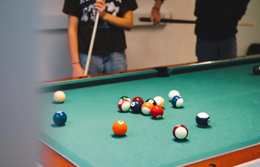også et stort udvalg af brætspil og bøger til hyggelige stunder. Derudover har vi bordfodbold og pool, som både børn og voksne kan udfordre hinanden i. Og der er selvfølgelig altid mulighed