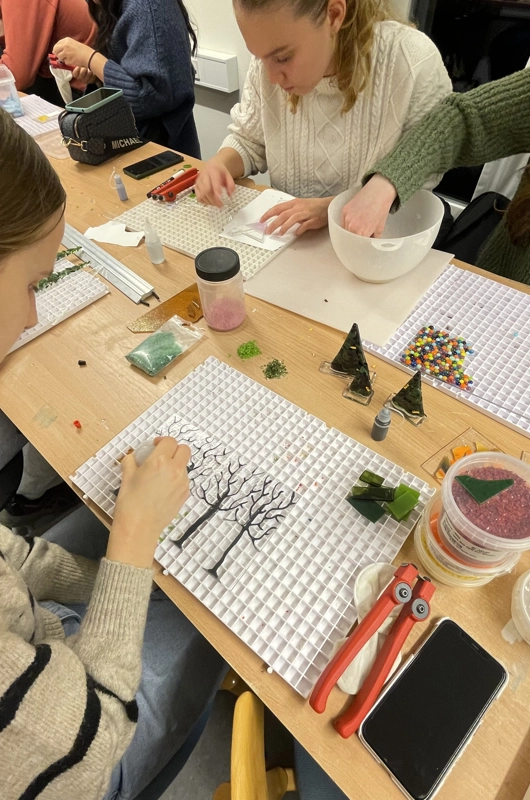 Brug din kreativitet og prøv kræfter med glas. Vi skærer, smelter og former glas til seje figurer, smykker og flotte kunstværker.